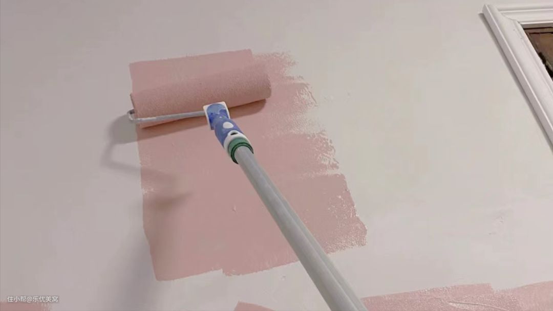 4. 粗细滚筒交替施工:用粗滚筒均匀涂抹油漆在墙壁上,然后用细滚筒重刷一遍粗滚筒施工区域,使墙面油漆变得细腻,并刷出所需花纹。