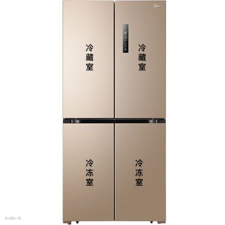 十字对开门冰箱主流容量在400L-500L,如图所示冰箱内分为四个区域。 优势是四个区域可独立打开,每次开启冷气流失比较少,食物分区也比较清晰,对强迫症用户来说非常适合。
