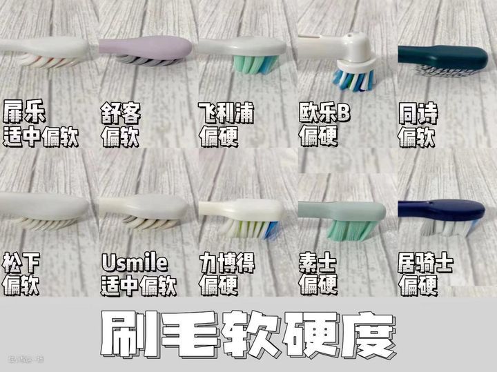 刷毛偏硬:飞利浦、欧乐B、力博得、素士、居骑士