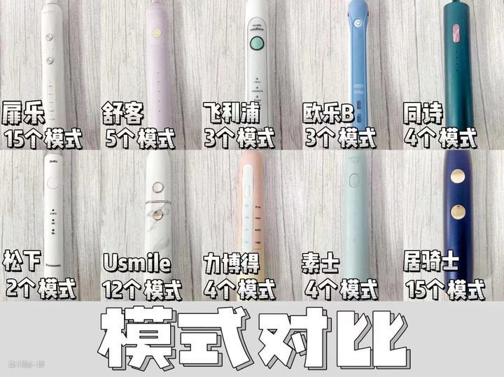 维度分析:我们每个人的口腔随时都会发生动态的变化,这就需要电动牙刷的兼容性足够强才能满足我们的口腔护理需求,体现在产品上就是震频范围广且档位数量丰富,并配置有多种类型的刷头。这里特意选取了各款式的模式数量做一番对比。