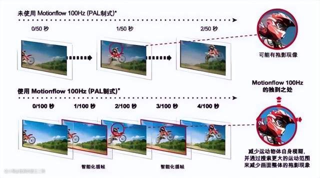 Motionflow 技术是索尼运动补偿技术的称谓,实际也就是一般的MEMC。目前索尼全系电视机均采用该技术,主要目的就是通过插帧的方式减少画面拖尾、残影等问题,观看运动场景、动作大片的话会特别实用。