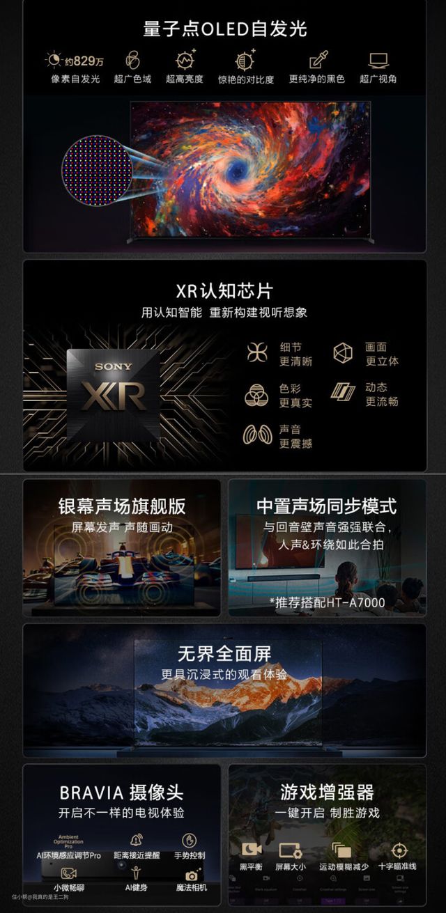 A95L:4K分辨率QD-OLED电视机,尺寸包括55、65和77寸,OLED电视旗舰系列,目前该系列国内已经于9月正式上市。