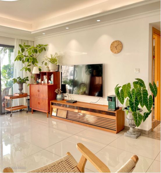 现代年轻人越来越喜欢原木家具带来的沉淀感,细细回味很有味道,随着季节的变化,搭配各种不同的绿植,整个家显得很有生机!