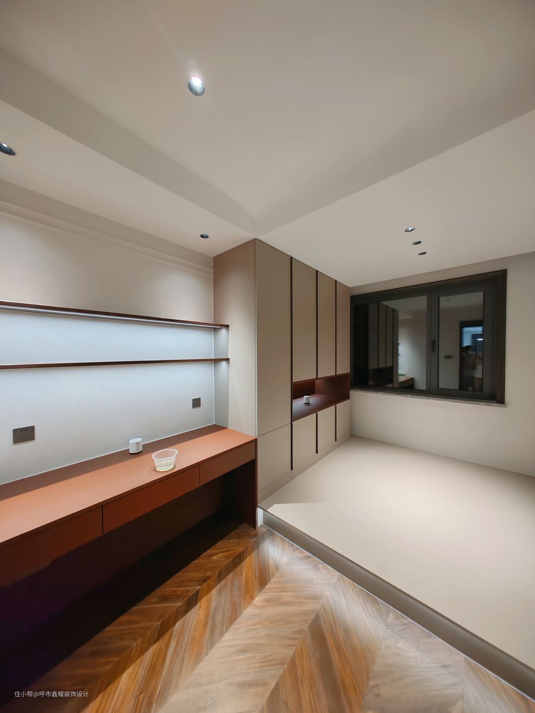 主卧室有更衣间玄关玄关整体呈半包裹形灵感家态,玻璃和墙面相结合,引入充足采光。次卧室空间区域榻榻米设计几乎成为一种新的流行方式,灵活多变,同时高效利用空间,满足收纳与多功能空间的需求,给人带来很多轻松、休闲的生活氛围。