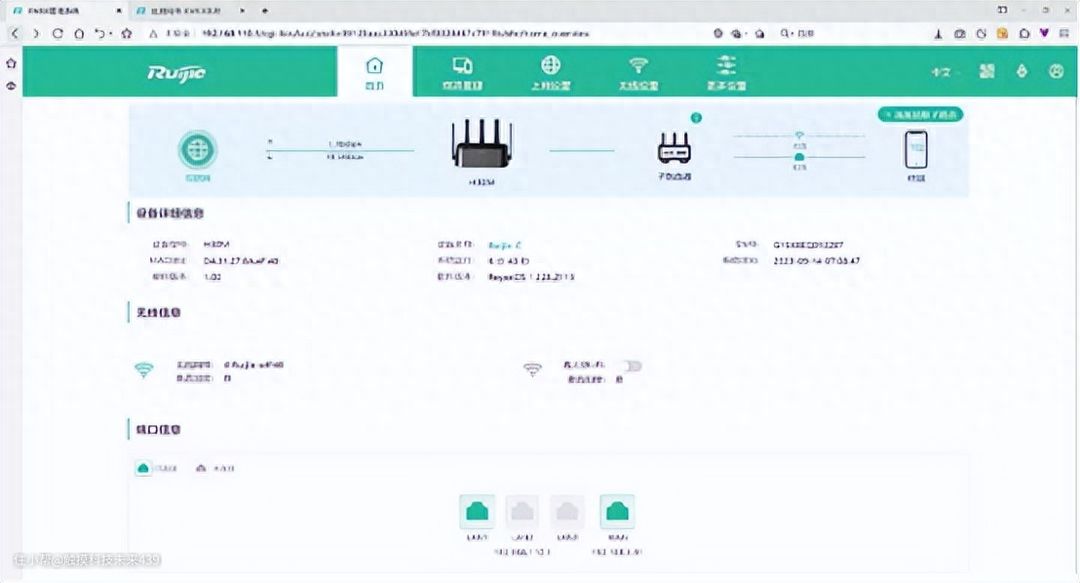 虽然锐捷蜂鸟旗舰版子母路由器支持APP管理配置,不过我一直比较喜欢用WEB配置,这样看得比较清楚一些。