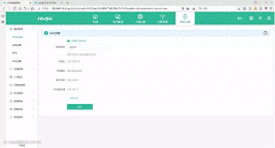 在更多设置页面里,可以看到WAN设置,我家这边的网络情况与一般家庭有点不同,由于当初装修的水电工可能动到了预埋的网线管,所以当初改光纤的时候发现网线拉不动,只能把光猫放在弱电井里,用原来的网线入户,所以我房间内的多媒体箱里放的是交换机,然后连接到每一个房间。所以联网类型是动态IP。
