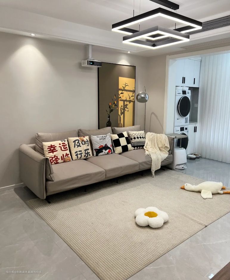 沙发背景墙预算不足,那就乳胶漆上墙,如果预算充足直接木饰面上墙,美观大气上档次,还容易打理!