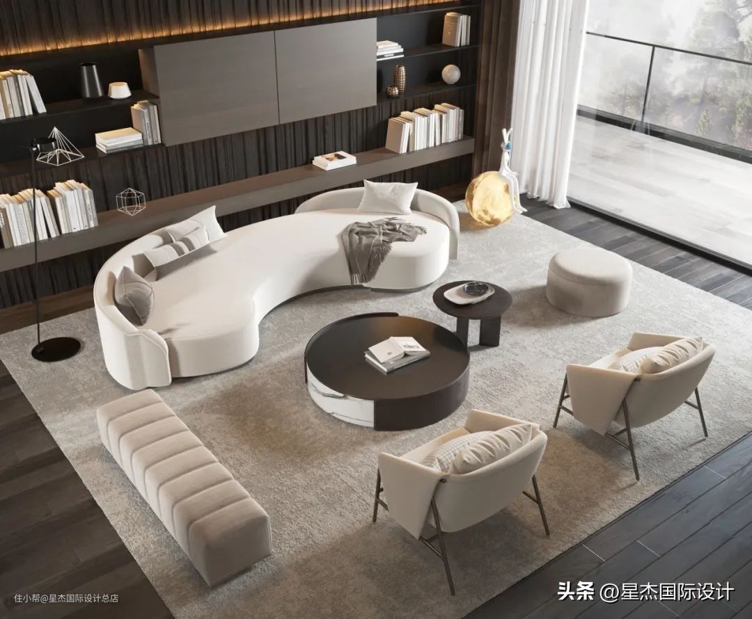 客厅大于6m,可放置三座沙发+双人沙发+单座沙发。
