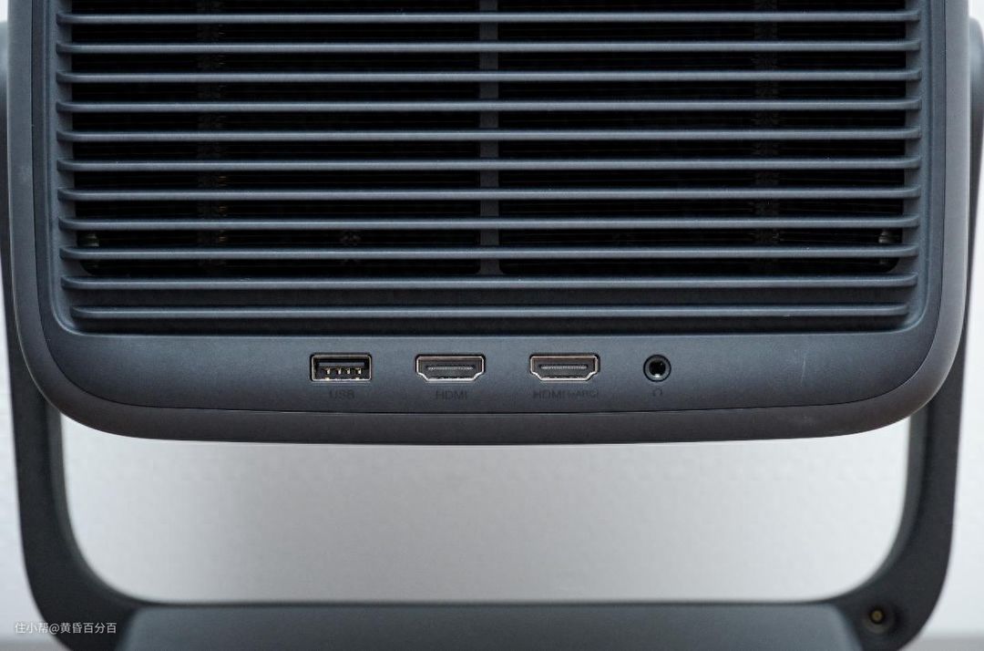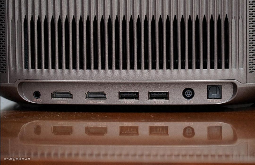 ▲极米 H6 Pro的接口则相对丰富,拥有HDMI 2.1接口两个(其中一个支持eARC),USB接口两个,光纤音频接口、3.5mm音频接口各一个。
