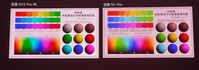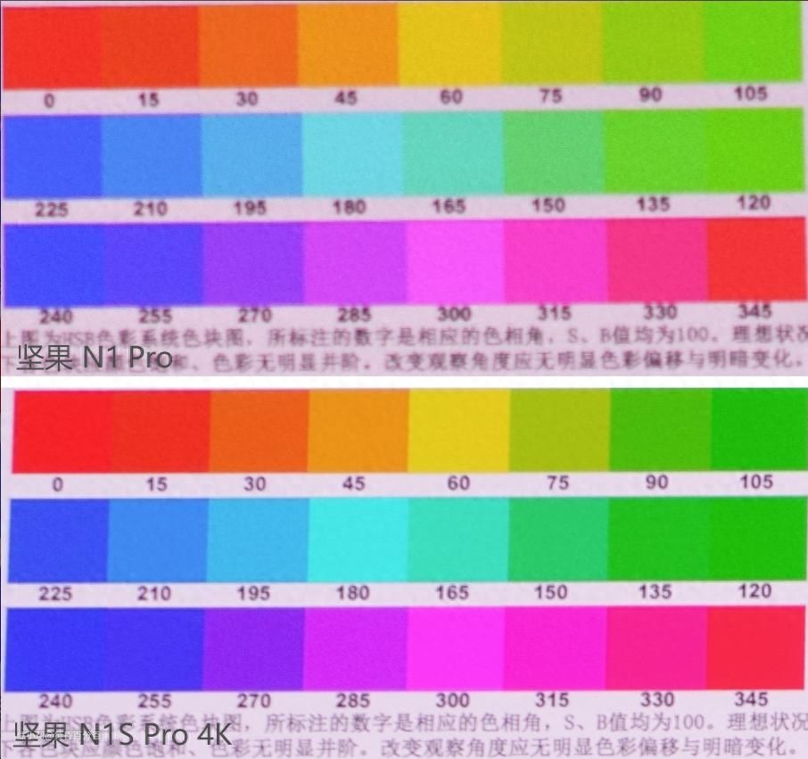 ▲紧接着从这张4K电视色彩表现图中,可以直观的看出坚果 N1S Pro 4K的亮度更高一些。