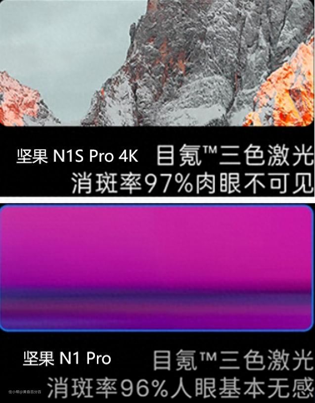 ▲在近两年前坚果 N1 Pro上就能达到96%的消斑率,当时官方用的词时人眼基本无感,而全新的坚果 N1S Pro 4K 上则提升到了97%的消斑率,官方用词肉眼不可见。