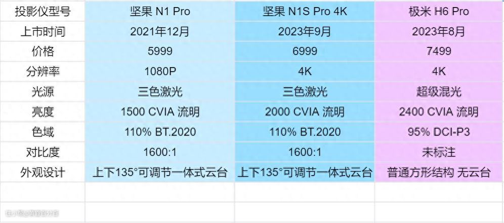 坚果N1 Pro & 坚果 N1S Pro 4K & 极米H6 Pro参数与外观