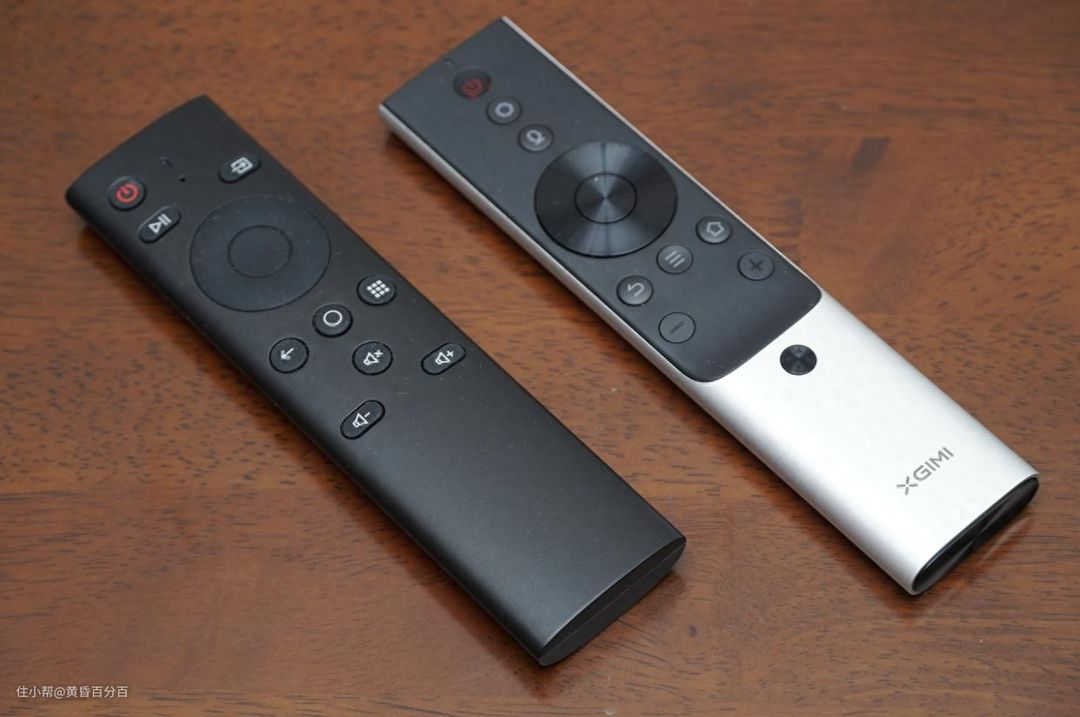 ▲两款投影仪的遥控器在布局上都比较合理,用起来很顺手,不过在用料及手感方面,采用阳极氧化铝外壳的极米 H6 Pro遥控器则优于坚果 N1S Pro 4K的遥控器。
