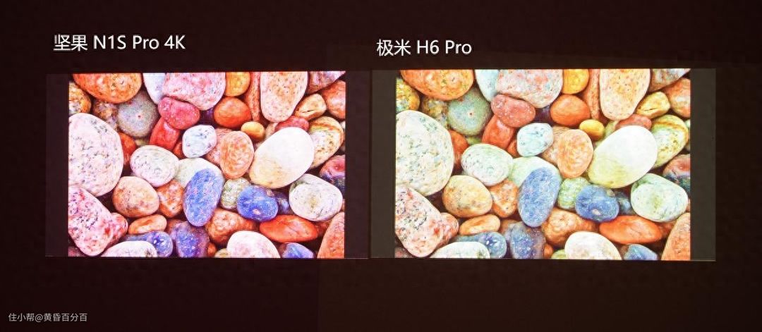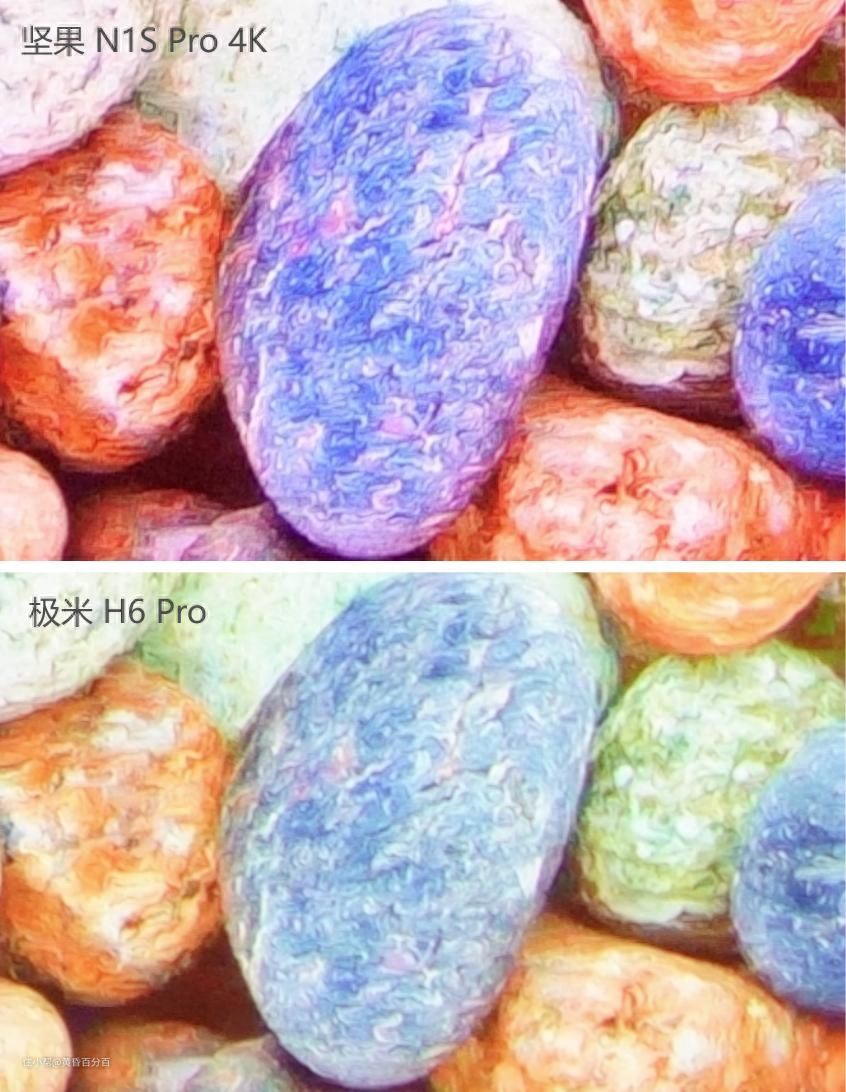 ▲为了确认坚果 N1S Pro 4K的色彩更加浓郁,我又找了一张彩色鹅卵石的照片,坚果 N1S Pro 4K的画面色彩明显更加浓郁且分明,更具冲击力。