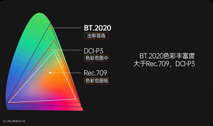 ▲所以,坚果 N1S Pro 4K所拥有的110% BT.2020色域的面积是远高于极米H6 Pro的95% DCI-P3色域的。