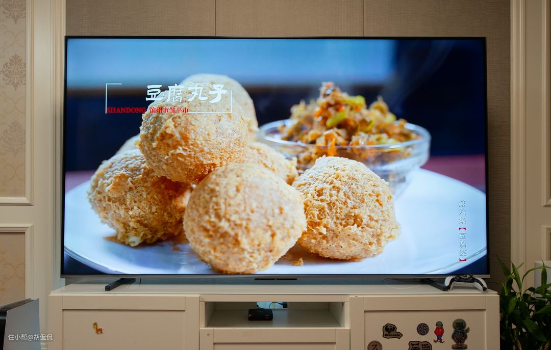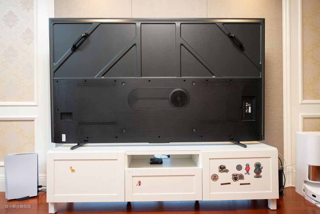 这个是上一代的Vidda X85配置了双扬声器, 同时有一个独立的低音炮, 放在客厅里面, 不需要开音响, 音质就已经很给力了。