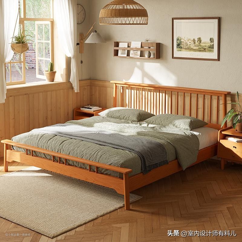 日式风,原木风的卧室中安排一张温莎床,空间也变得更轻盈清爽了。