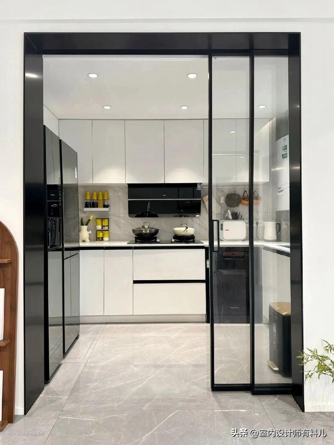 再也别做传统的地轨推拉门了,缺陷太多,厨房油污重,轨道凹槽内会积有陈年累月下的灰尘与泥沙,怎么也弄不干净。