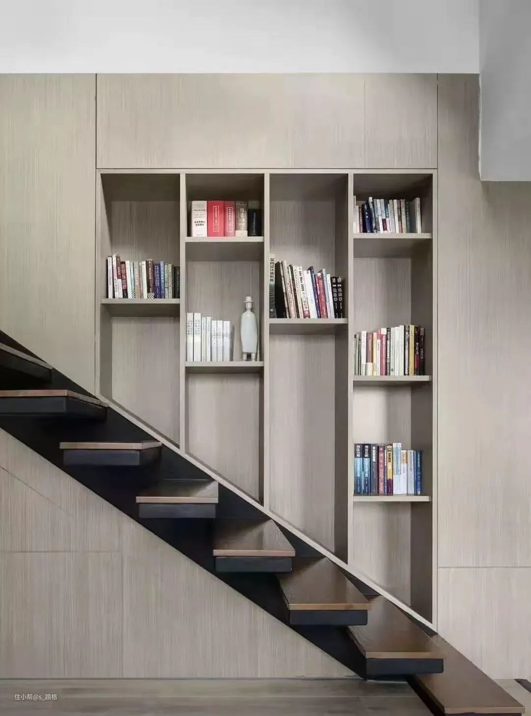 楼梯的功能不仅仅是连接上下楼,还可以变身为储物空间,增加收纳。
