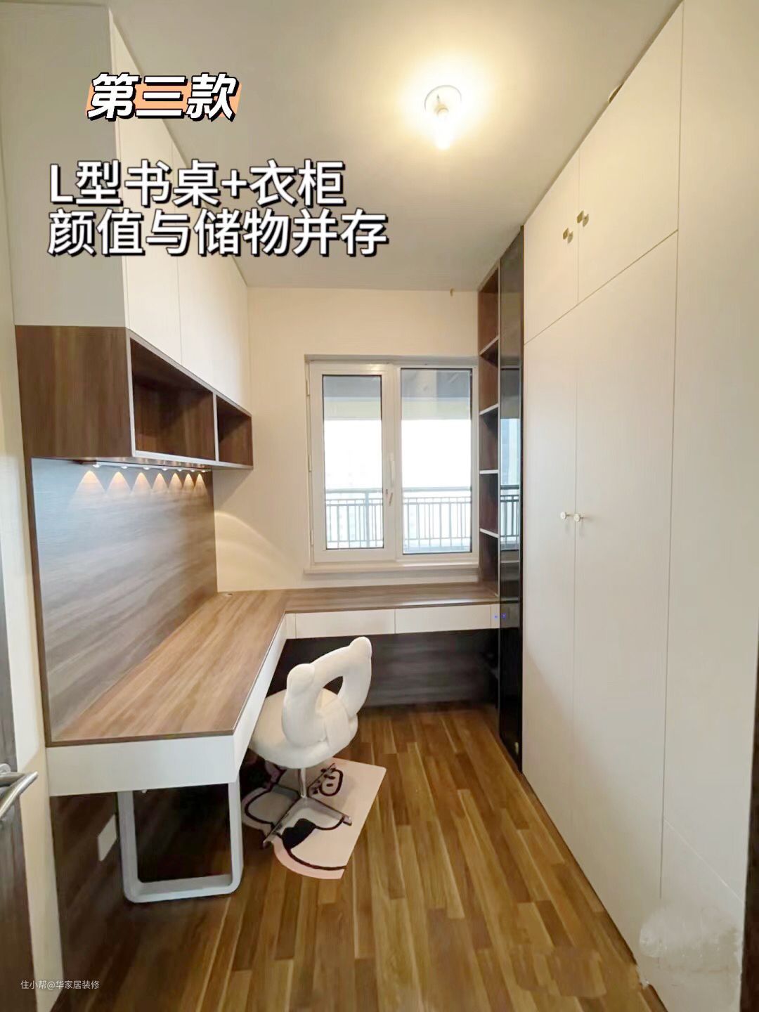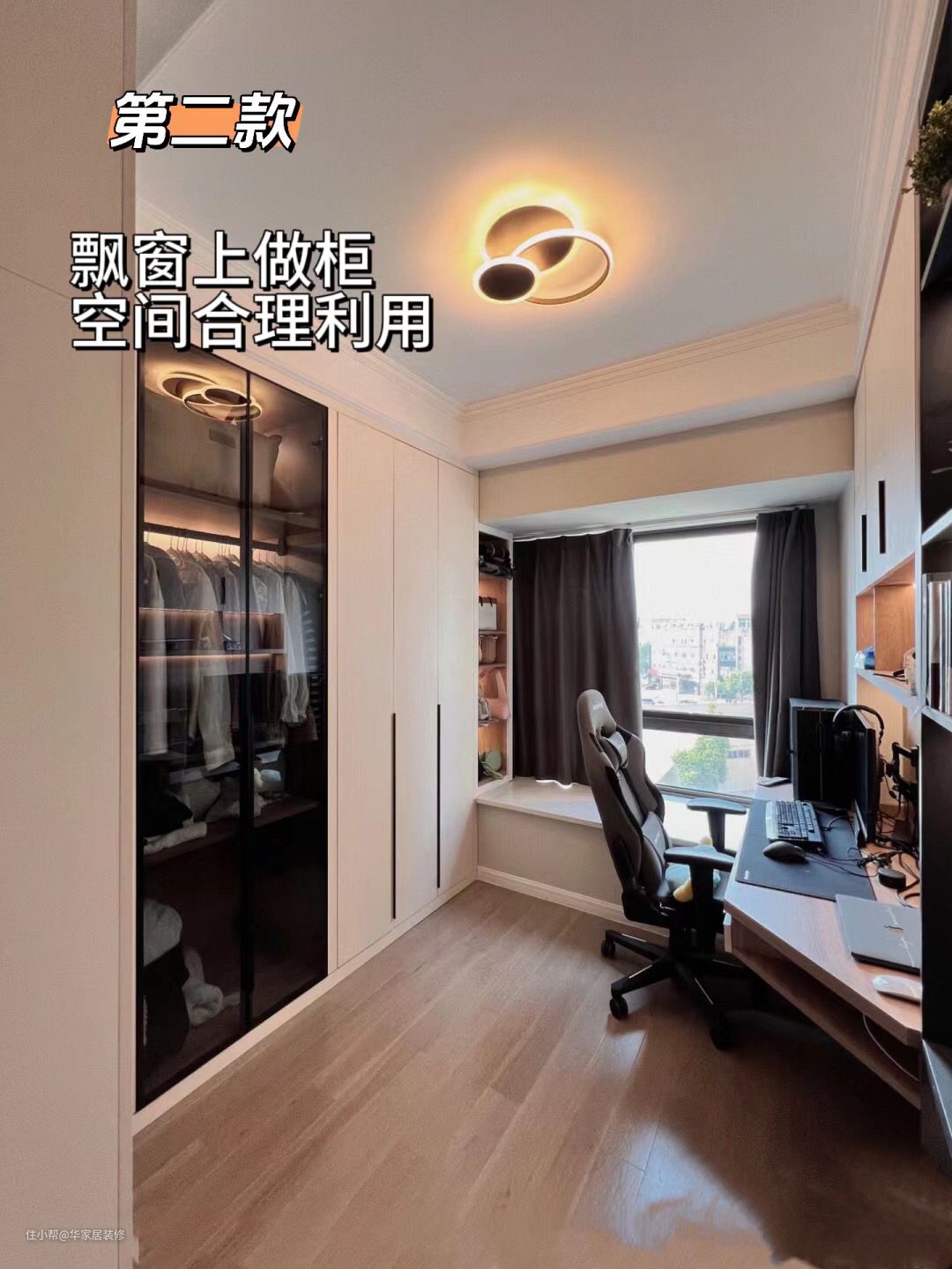 - 将飘窗改为书桌一体,既增强了空间的收纳能力,又照顾到视觉上的舒适感~