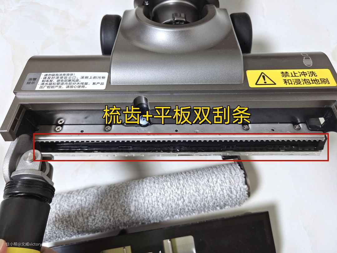 美的GX5 Pro针对这一痛点做了优化,采用了平面防缠绕设计,通过梳齿+平板双刮条组合,解决滚刷毛发缠绕的问题。