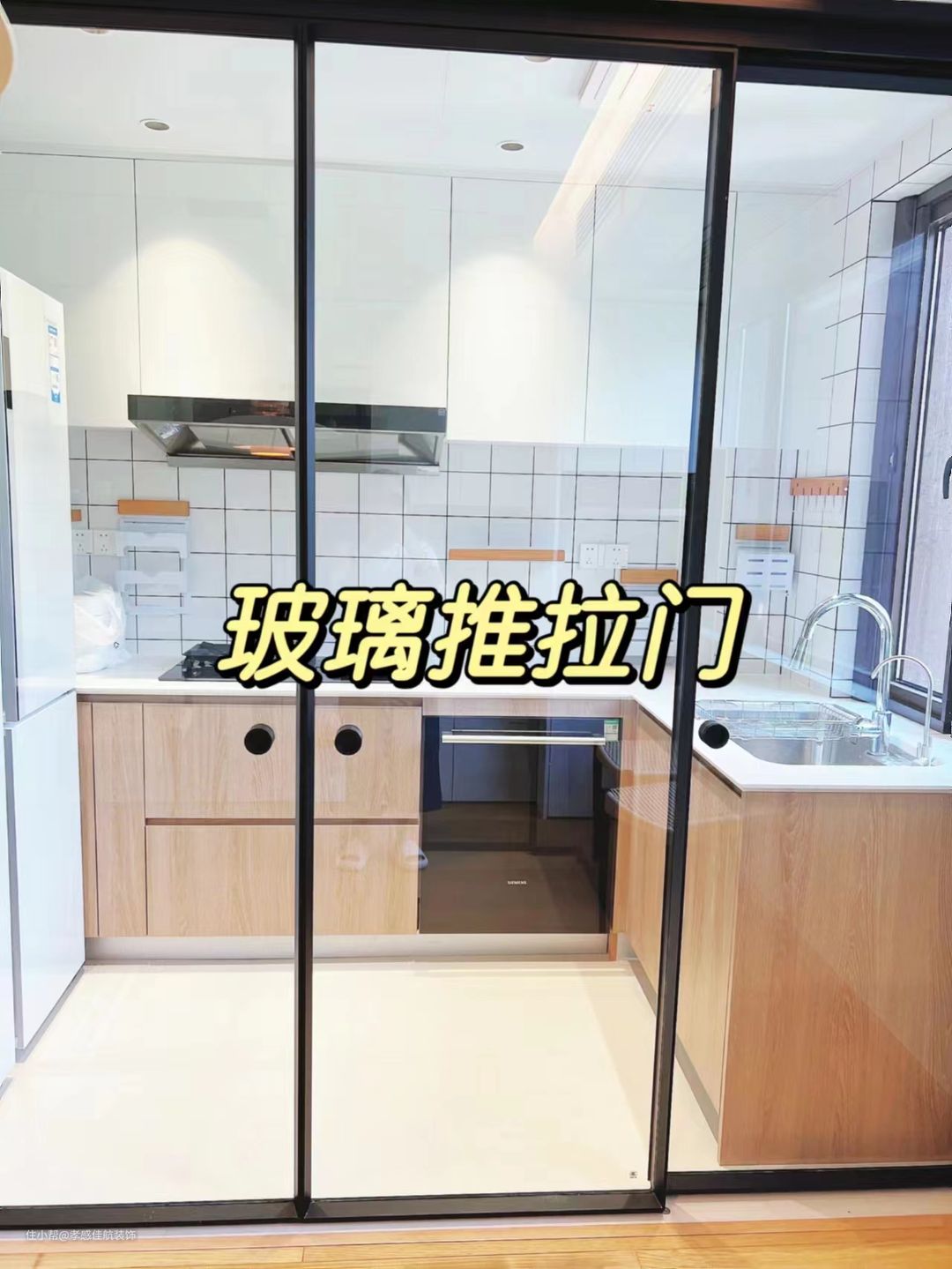 顶吸式油烟机安装在灶台上方,吸收油烟效果好,占用面积不大,采用特殊涂层一体化设计油污不轻易沾黏,易清洁。衣柜到顶的提高收纳空间。厨房双层中空玻璃推拉门的设计有效节省空间,又同时具备通透性,使室内光线更加充足,双层中空玻璃推拉门具有隔热隔音效果和抗冲击能力。