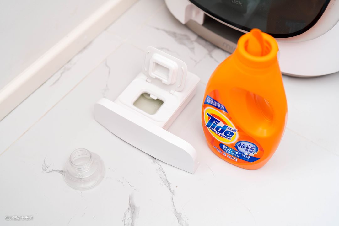 舱门下方就是超大洗衣液储存盒,加入270ml洗衣液能用1-1.5个月。