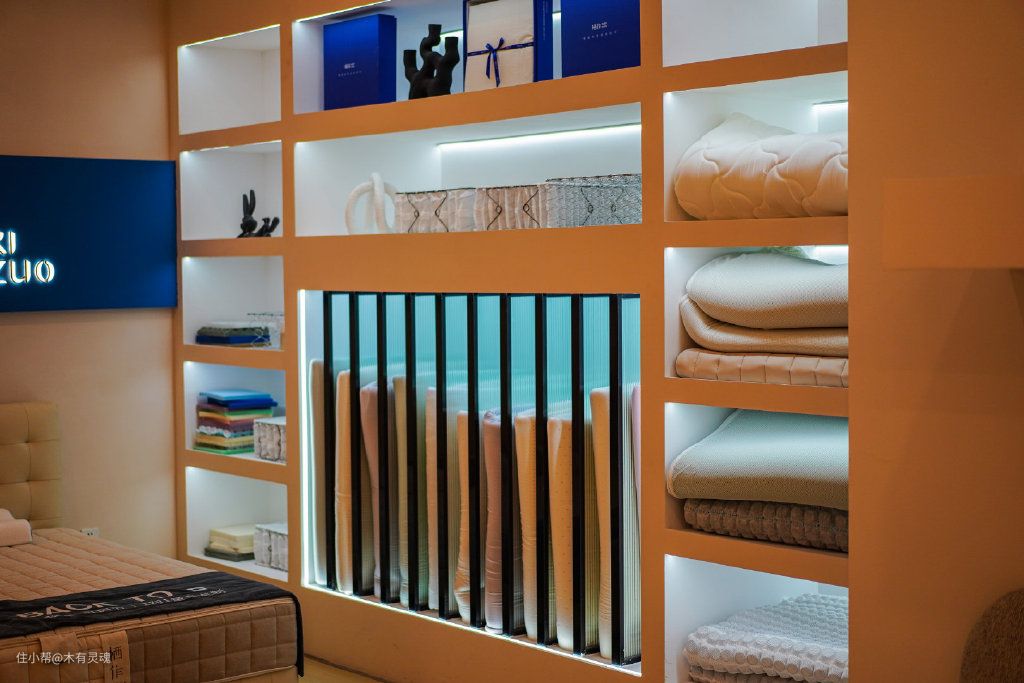 如果说门店是看着更新、更全面了,那么具体门店的体验我觉得相当有得说道。相比于其他卖床垫的门店,你能明显感受到栖作是在卖“更好更环保的材料和组合”,从进门第一眼看到各种床垫材料的陈列就能看出来。