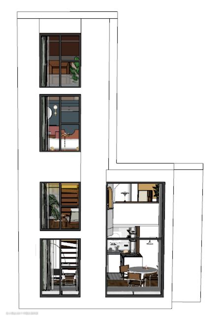 “很多人问我为什么要改成4层,做成3层不是更舒服吗?其实是因为开发商留给我们的卡槽就是4层的,落地窗玻璃也是按照每4.5米一个窗来平均分的,如果做成3层,窗户会变得很丑。”