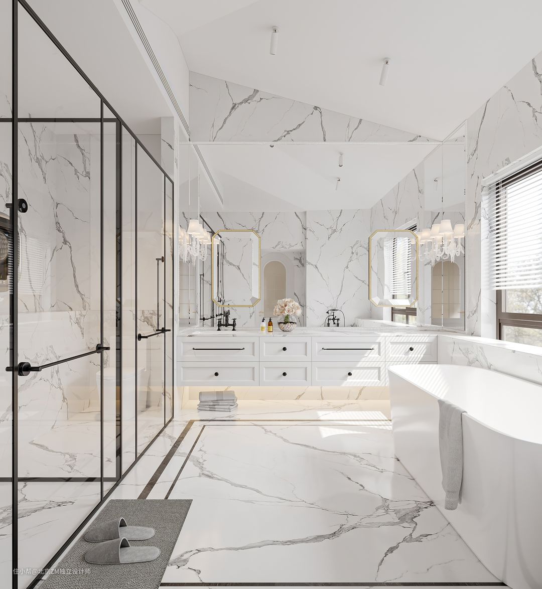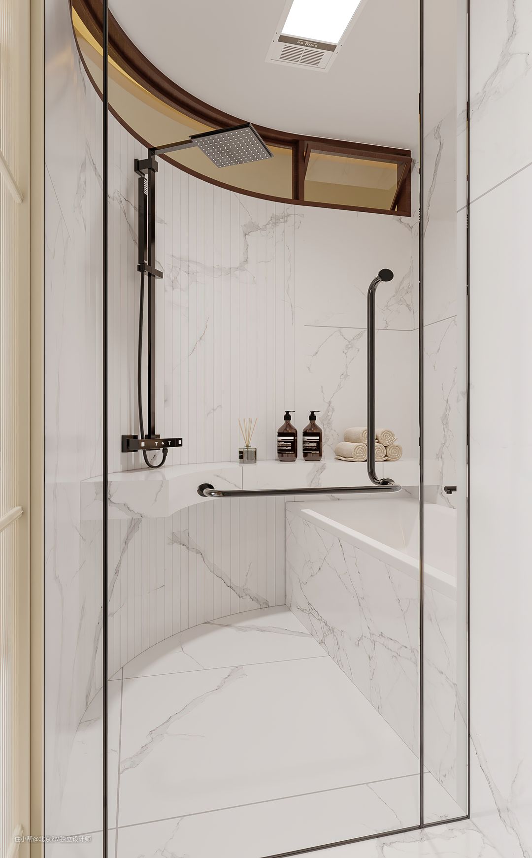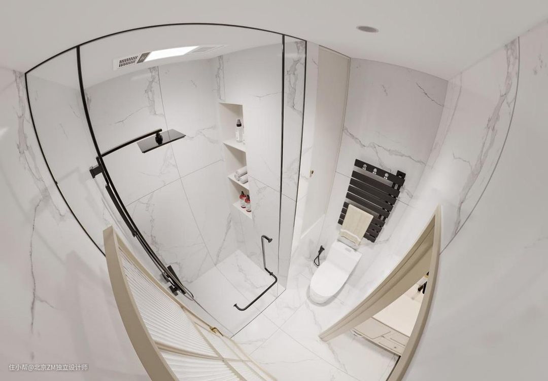 3.淋浴房和马桶间利用玻璃隔断分离,既满足了功能上的需求,又保证了隐私性。同时,窗边设置了女主最爱的浴缸,让洗澡成为一种享受。