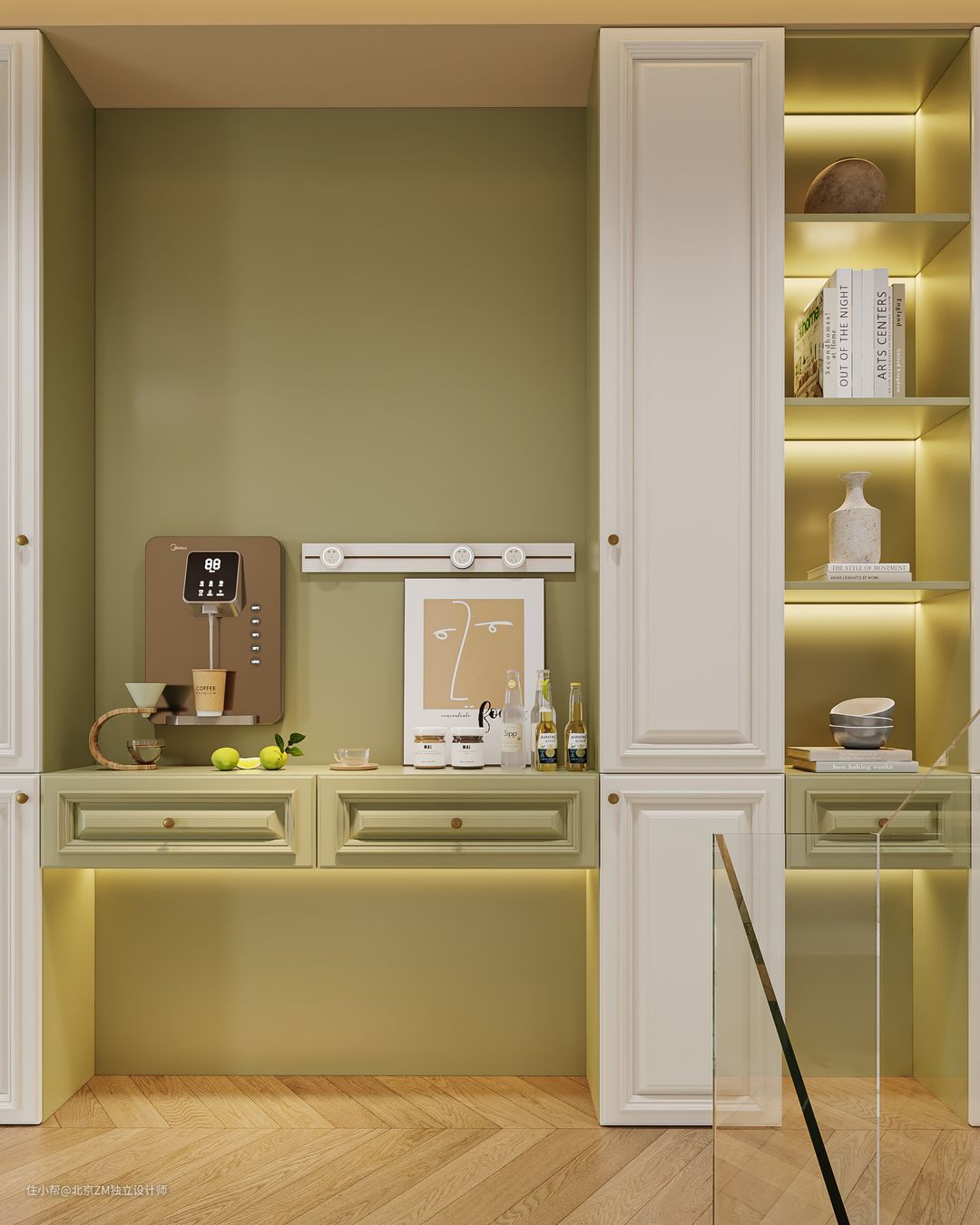 1.墙面采用三棵树青云石艺术漆进行涂刷,高品质艺术涂料给墙面带来更加细腻和丰富的质感,会给清古美式的空间增添一份温婉和雅致。