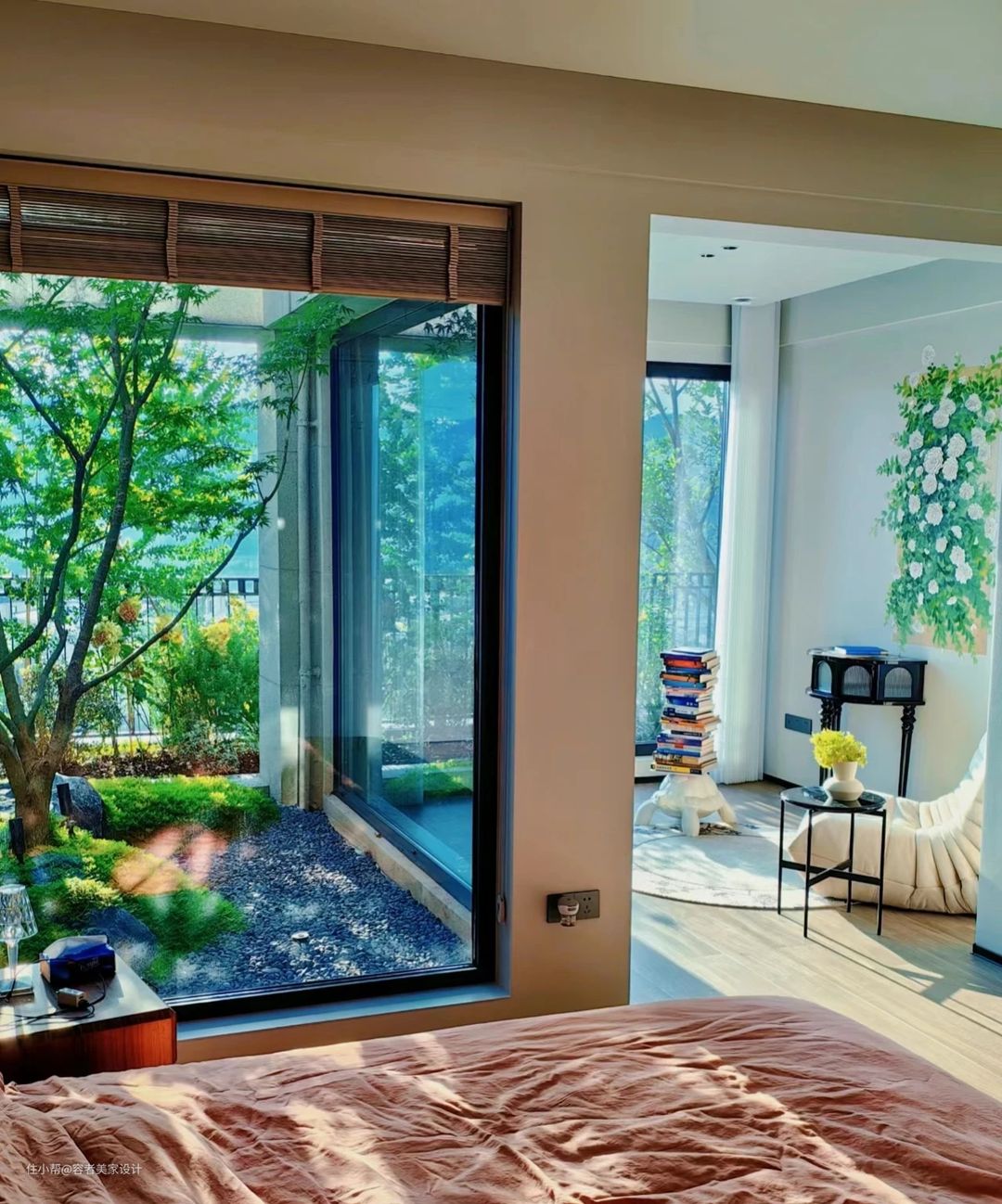 很多人家的卧室都是很封闭的,因为卧室是私密空间。可是这位女主家的卧室,确实很开放的。只不过是形式开放,等到晚上的时候,门帘或窗户关,卧室又会变成私密空间。