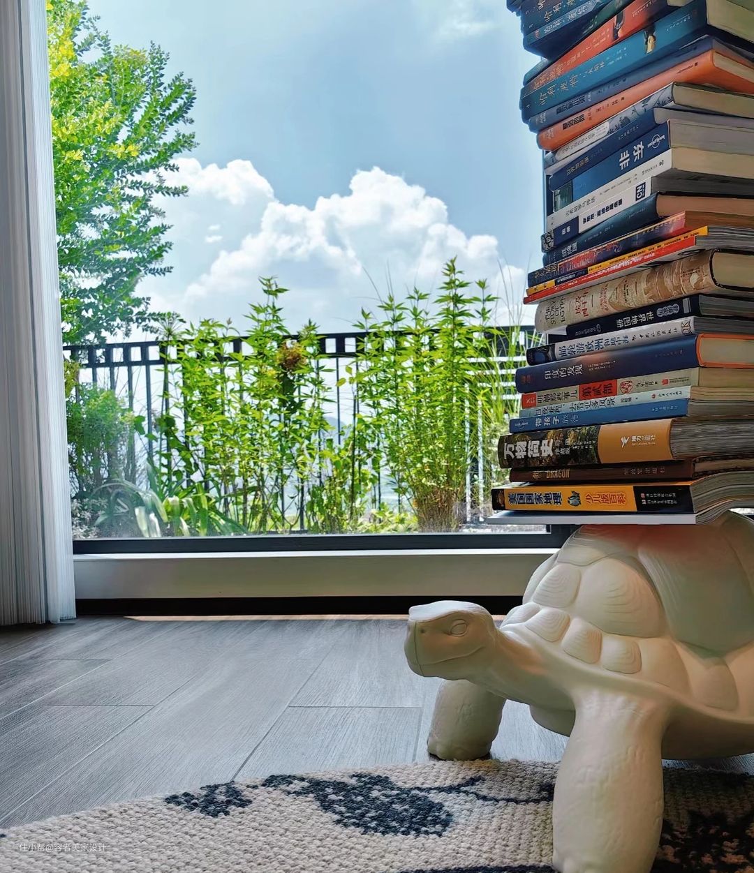 而且还铺了一些草坪,在阳台这里看上去特别的美,也觉得特别的舒适。