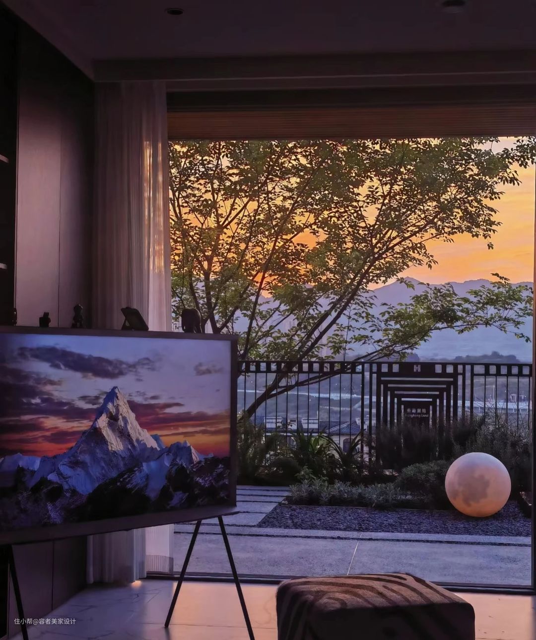 到了傍晚的时候,天边的云霞染成红色,整个室内也变成了红色,给人内外一色的感觉。在这种环境里,看看天边的云霞以及远处的苍山,自己的心境也会更加开阔。