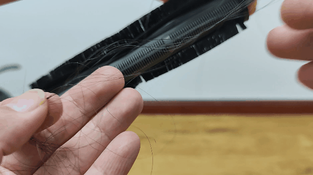 由于刀片切割时需要滚刷带动,这里只在主机外测试了下其对头发的切割效果,通过动图可以看到,用比日常地面存在更多的头发进行测试,切割头发的效果还是不错的。