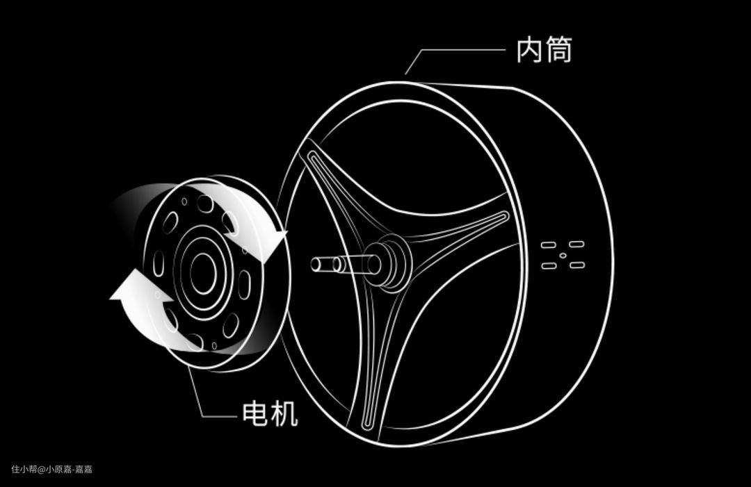 高端专业的壁挂洗衣机基本都会采用DD直驱电机,其原理是直接通过电机金属转轴来带动内筒运行转洗,能耗小、动力强就很容易理解了。