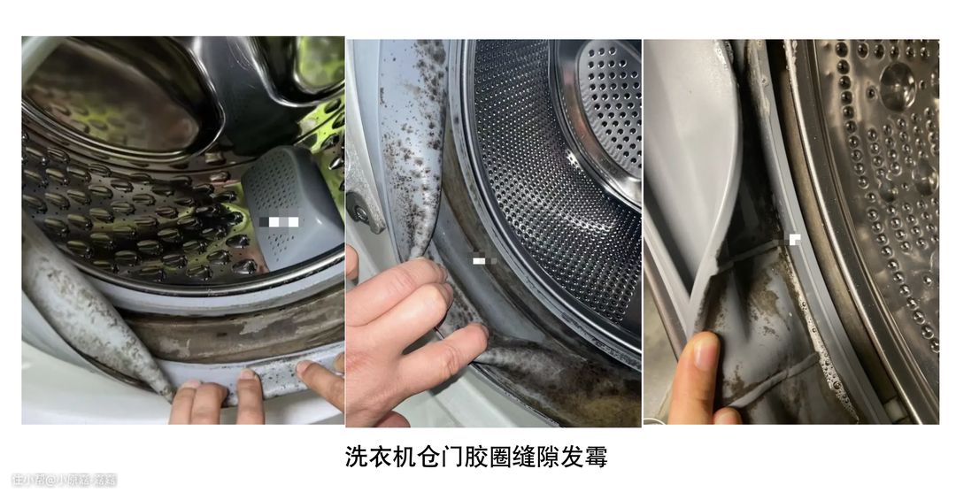 如果用这样的洗衣机在洗衣服,也许一开始衣物是干净的,久而久之,反而把胶圈缝隙的霉菌带到衣物上,越洗越脏,这就太可怕了。