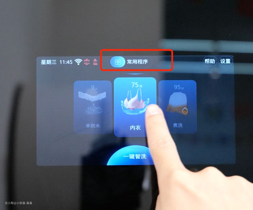 比如对我常用功能的组合,还不支持一键复选(记忆),每次启动洗衣程序前都得手动再选一次……
