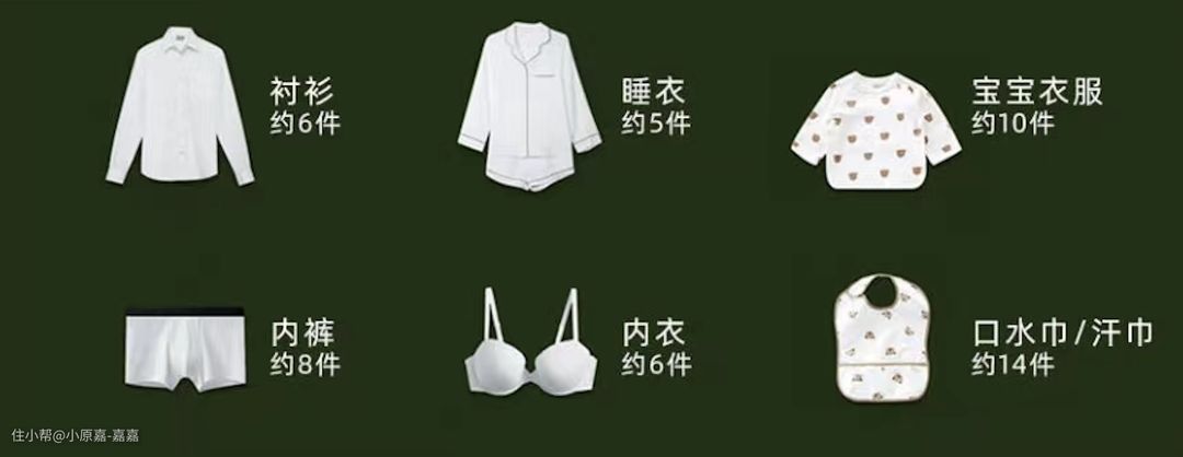 (图为3kg桶容量对应单类衣物的数量,仅供参考)