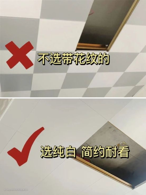 ②不选带花纹的扣板。铝扣板尽量选择纯色的,不要选花里胡哨带各种图案的款式,纯色更耐看,不容易过时。