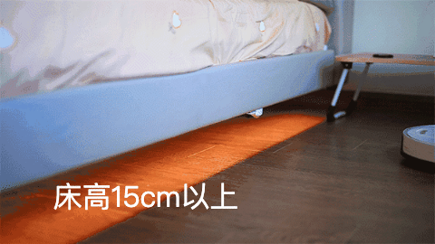 床的下沿与地面之间的距离,最好不小于15cm,现在有很多床已经做到了25cm。地面缝隙越大,清洁起来就越方便,15cm是扫地机器人能进去的最小尺寸。此外缝隙越大,视觉效果也更高挑,会显得卧室里的采光更好、空间更大。