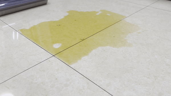 当脏污度传感器检测到回收污水比较脏时,会迅速做出反应,调大喷水量和吸力。特意测试了下,当洗地机遇到面粉时,喷水量立马就变大了。