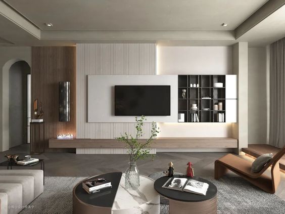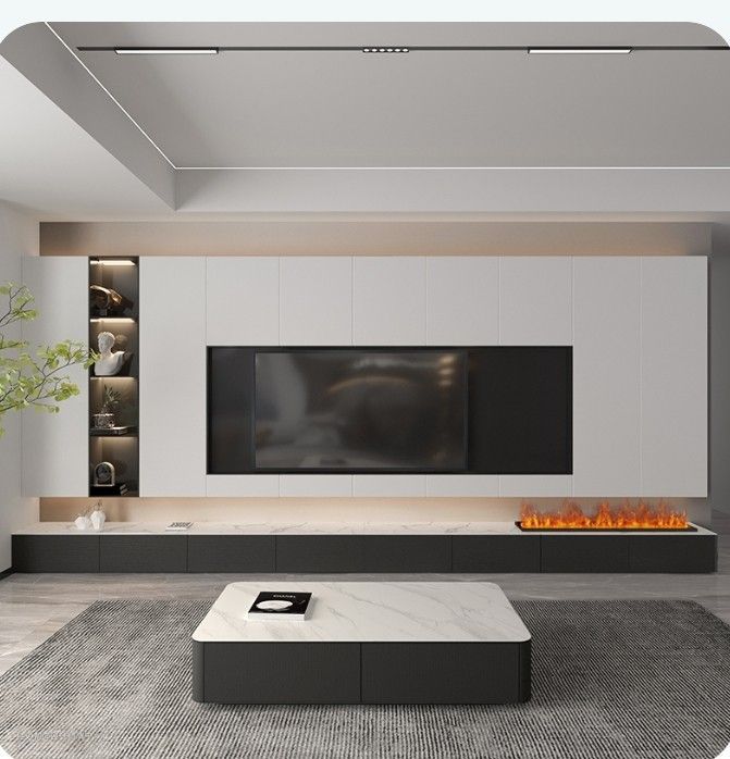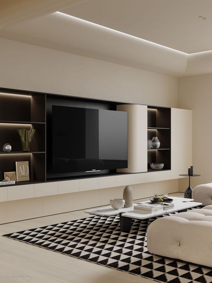 3. **电线管理**: 好的电视柜通常会考虑到电线的管理,通常有线孔或隐藏的电线通道,以确保电视区域看起来整洁,电线不会混乱。