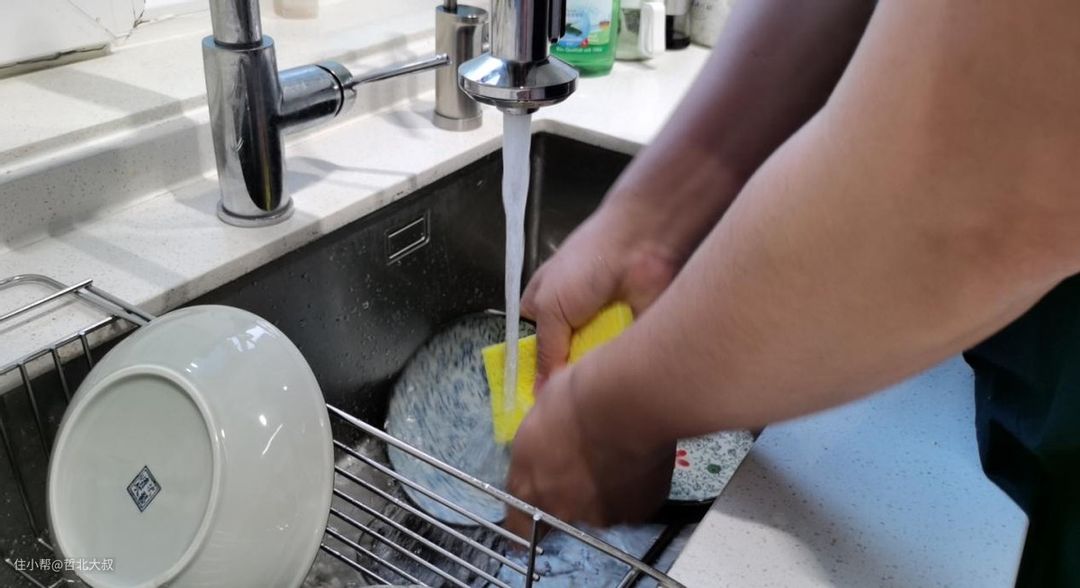 有朋友就会说了,你家没有热水器吗?咱还整个冷水洗呢,其实很多的朋友家里都这样,有热水器,要不就是卫生间和厨房远,装修时多走一条水路得个万八千块的装修费,所以没把热水接到水槽下边。要不就是当时装修没考虑这一点,没接热水。还有就是有的朋友是把卫生间的热水器接厨房了,但是距离远,要先接好久的冷水才出热水。