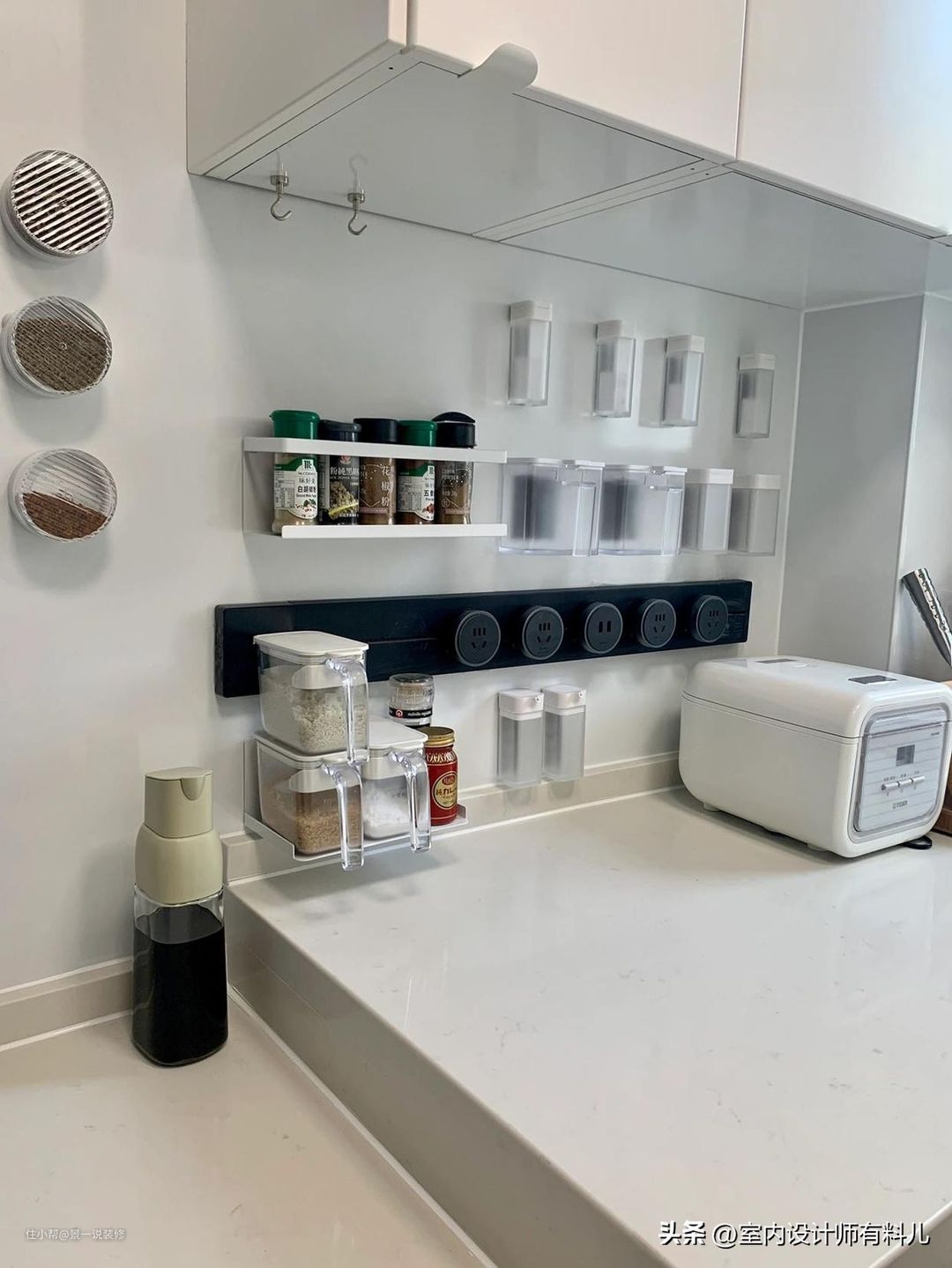 珐琅板易清洁,还带有磁吸属性,金属物件都能直接挂在上面,来增加收纳能力。