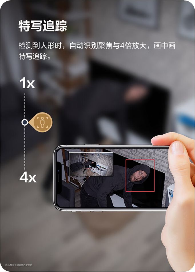 旋转/摇头功能:最为传统的方法,一般这类摄像头的底部都设计有一个基座,它能360°水平或上下旋转,这样能兼顾到更多的画面,但缺点就是不能达到全景同步监控的程度,这一点可能会劝退很多人。
