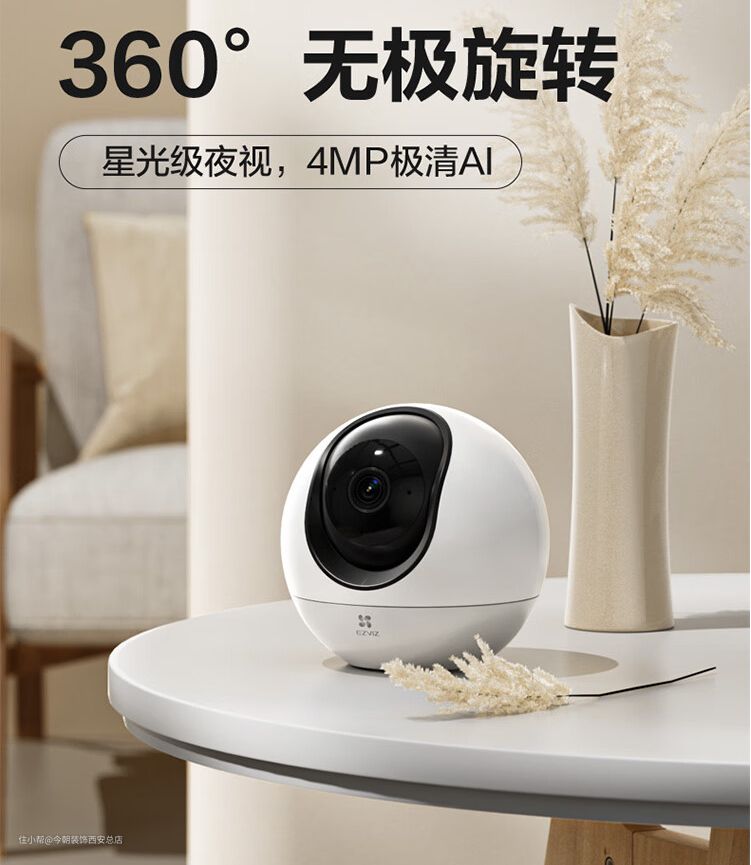 全景摄像头:价格相对比较昂贵,如果只是用来拍摄记录家里的画面,些许有些大材小用了,一般全景摄像头由1-2个鱼眼镜头组成,能环顾拍摄360°的画面,的确能照顾更多视野。