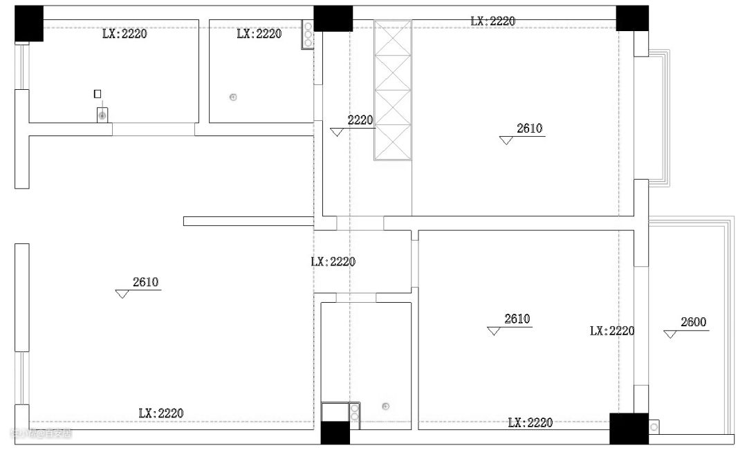 原户型格局很差,有各种隔墙阻挡采光,特别是原始客厅,仅有一个小窗,室内光线很差。幸好室内全是非承重墙,为空间格局的重塑提供了很大便利。