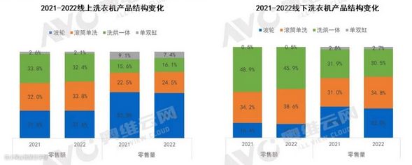 在某家调查机构发布的2021—2022年洗衣机调查报告中指出:受价格竞争及产品功能等因素影响,洗烘一体机结构占比下滑。而在今年的第一季度,洗烘一体机的占比还是没有呈现上升的趋势,反而独立烘干机份额上涨。
