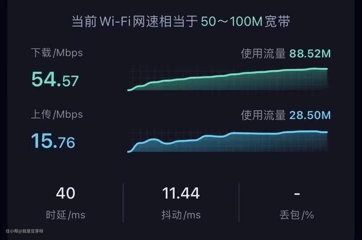 我之前用的某路由器在我的iPhone13的时延是40ms,下载速度54.57Mbps,上传15.76Mbps。